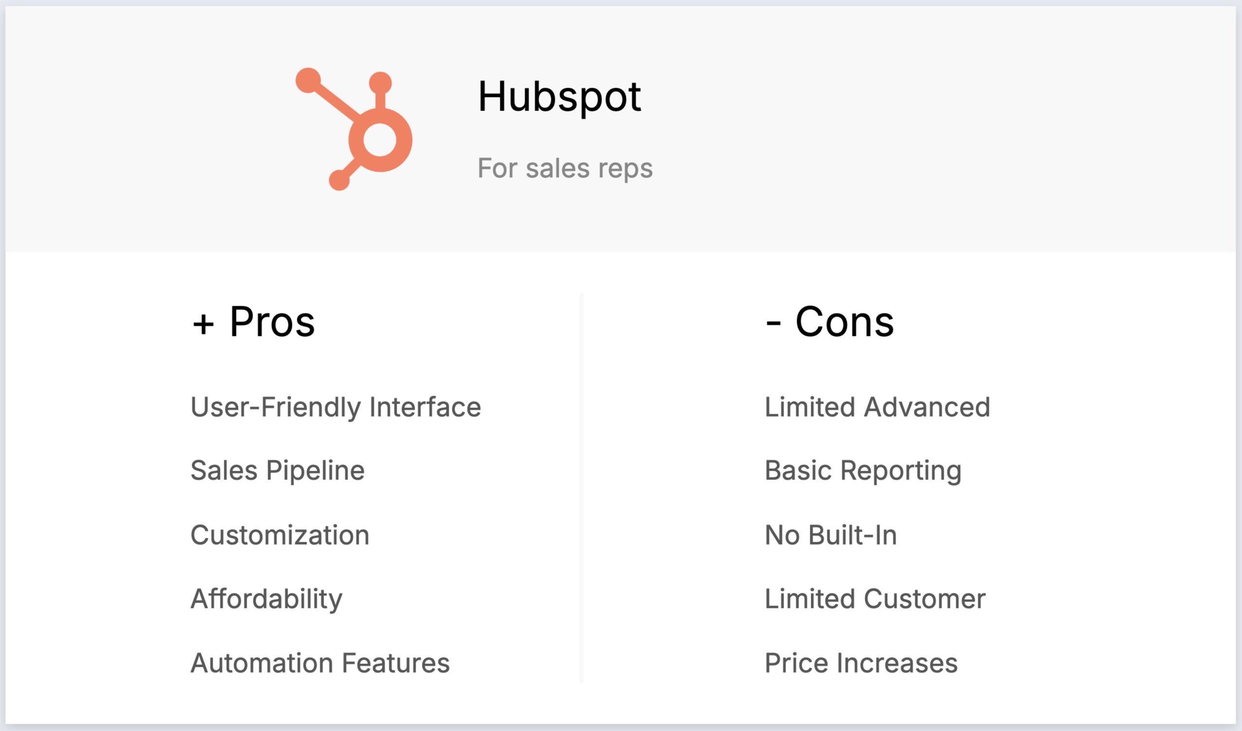 - Familiar interface: HubSpot's user-friendly design makes onboarding easier for teams of 20-50 sales reps, reducing training time across medium-sized organizations.