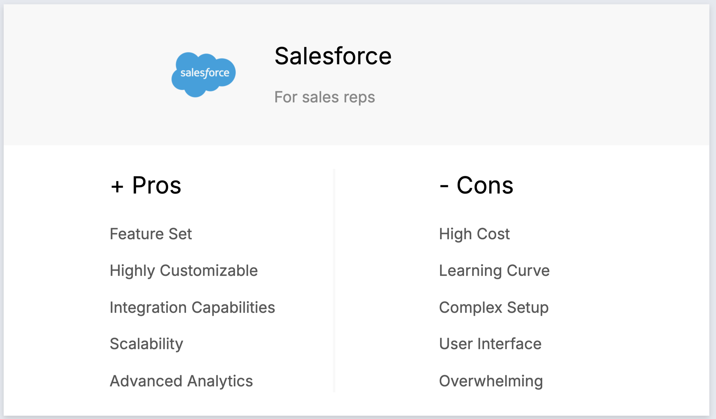 Salesforce is an enterprise-grade CRM platform that may be overpowered and cost-prohibitive for most teams of 20-50 people, requiring significant implementation resources and ongoing administration.