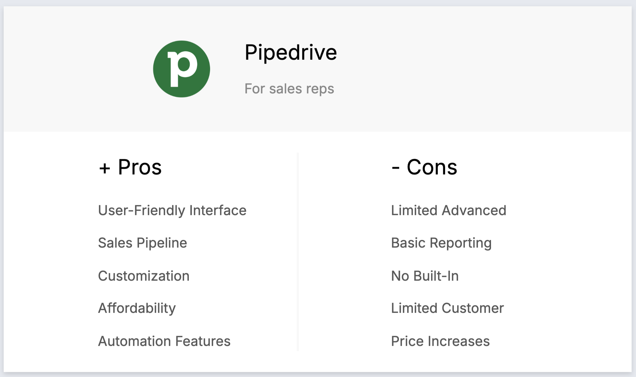 - Sales-focused approach: Purpose-built for managing sales pipelines, which can work well for medium-sized teams with straightforward sales processes.