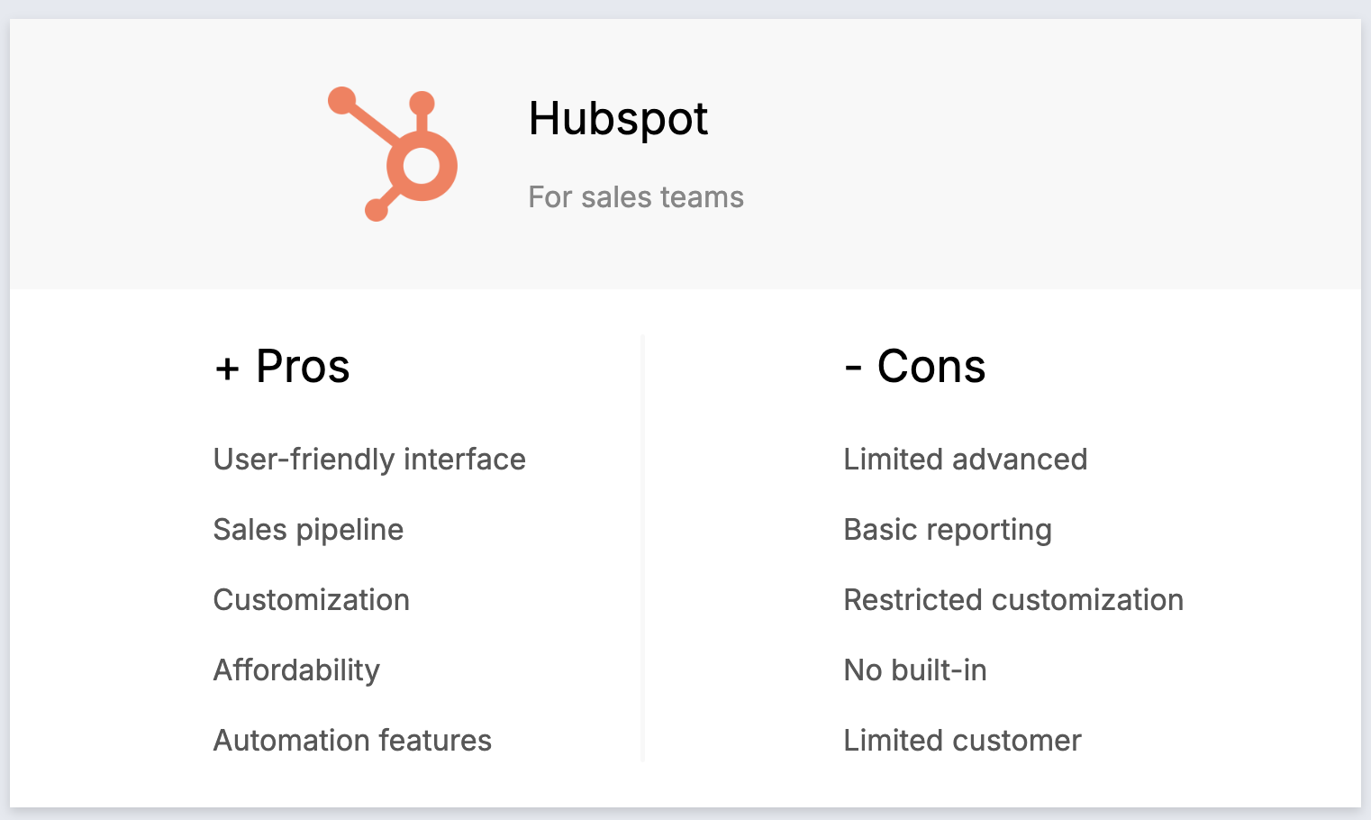 - Sales Hub: Provides deal tracking, pipeline management, sales automation, and reporting suitable for managing larger sales teams, though can be complex for medium-sized organizations.
